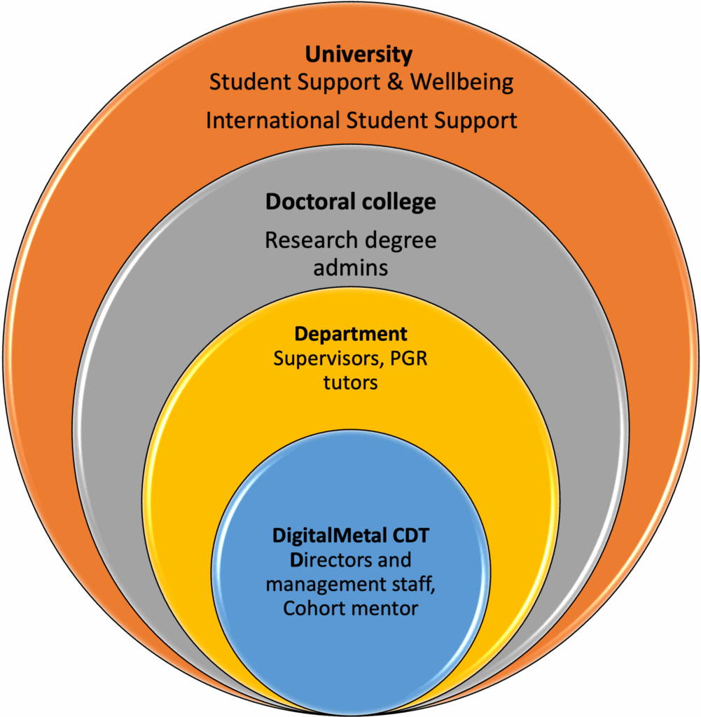 Student wellbeing is central to the success of the CDT. We seek to build a positive and supportive culture through our cohort-based model, peer mentoring, and inclusive training activities. At the same time, all students have full access to the comprehensive wellbeing and support services offered by their host universities, including counselling, accessibility and disability services, international student offices, and wider wellbeing initiatives.